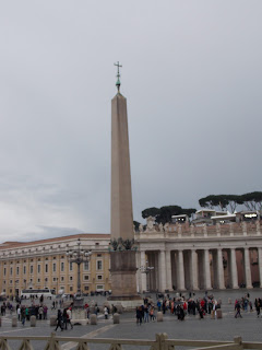 This weekend in Rome was fabulous! Waking up at 2 AM Friday morning was a bit difficult, but we all worked through it. The best part was, we made it to Rome and to the hostel before 12 PM, giving us plenty of time to spend exploring the city. We arrived at our hostel on Friday a bit sniffly because of the cold rain The first thing the manager did was ask if we wanted tea or cappuccinos. We all took him up on that offer and were greeted with awesome coffee and some yummy pastries! We spent about an hour or so munching on pastries and talking with one of the other hostel residents Belin, who also happened to be studying abroad in Barcelona, while waiting for our room to be cleaned so we could drop our things off. She was in Rome by herself so we invited her along for our afternoon tour of the city. Although it was rainy, we decided to start our visit off in Vatican City. Let me just say we got there at the absolute perfect time! We waited a maximum of 5 minutes to get into St. Peter's Basilica, which was absolutely gorgeous. After walking around the Basilica, we decided to climb to the top of the Cupola (And climb is not an overstatement. At one point there was a rope to help us up a tiny spiral staircase that only got narrower the further up you went). We were rewarded with an amazing view of the city! We then decided to get something to eat and we made the wrong decision to stay near the Vatican. Whenever looking for a place to eat, I try to get out of the touristy areas. The food isn't as good and it is more expensive. But anyways, we stopped at this restaurant and got pizza, it wasn't terrible pizza, but it wasn't great. After the Vatican, we went to the Castel del San Angelo and crossed the beautiful Bridge of Angels. After finishing up at the Castel and Bridge of Angels, we headed back to the hostel because we thought it was time for an awesome dinner, and awesome is definitely what we got. We asked our favorite manager, Ali, what he would recommend that was within walking distance of the hostel. His question back to us was whether we wanted a little food or a lot of food. We replied a lot. The name of the restaurant he sent us to was La Mosca Matta. They had different choices for a set menu and we went with the cheapest set menu. The meal that ensued was fabulous! The appetizers included prosciutto, mozzarella, fried zucchini and mushrooms, eggplant, and much more. After the appetizer came the pasta. I got ravioli in a crema de noci sauce. It was absolutely delicious! And finally for dessert we were served flan. Judging by the amount of locals in the restaurant, it was definitely the place to be; it was packed!